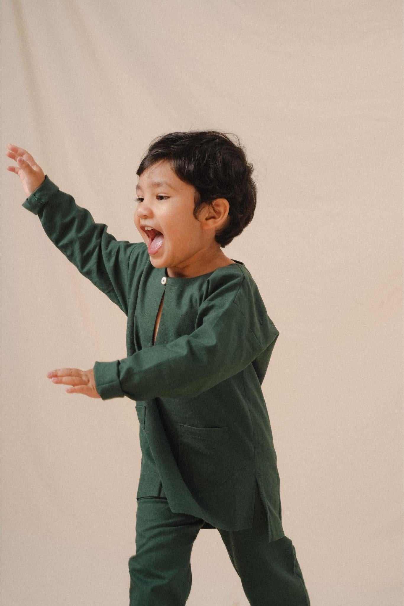 • Long sleeve baju melayu top with pockets