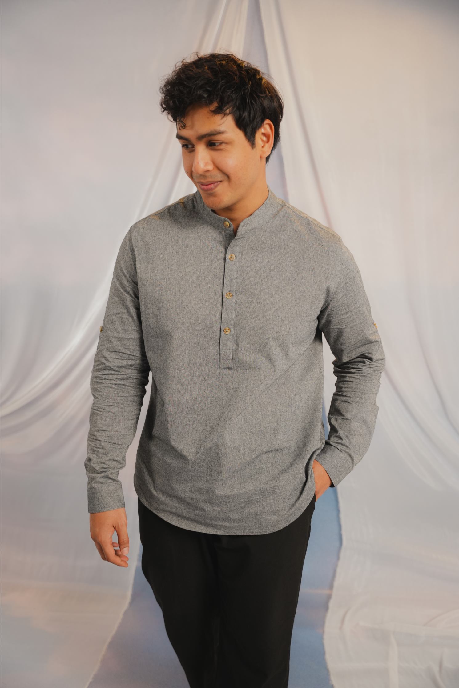 A garment like this asks for tenderness. Choose a looser fit (highly advisable to avoid a tight fit) & to handle with care. Treat it gently & it will drape and shimmer beautifully with every wear.