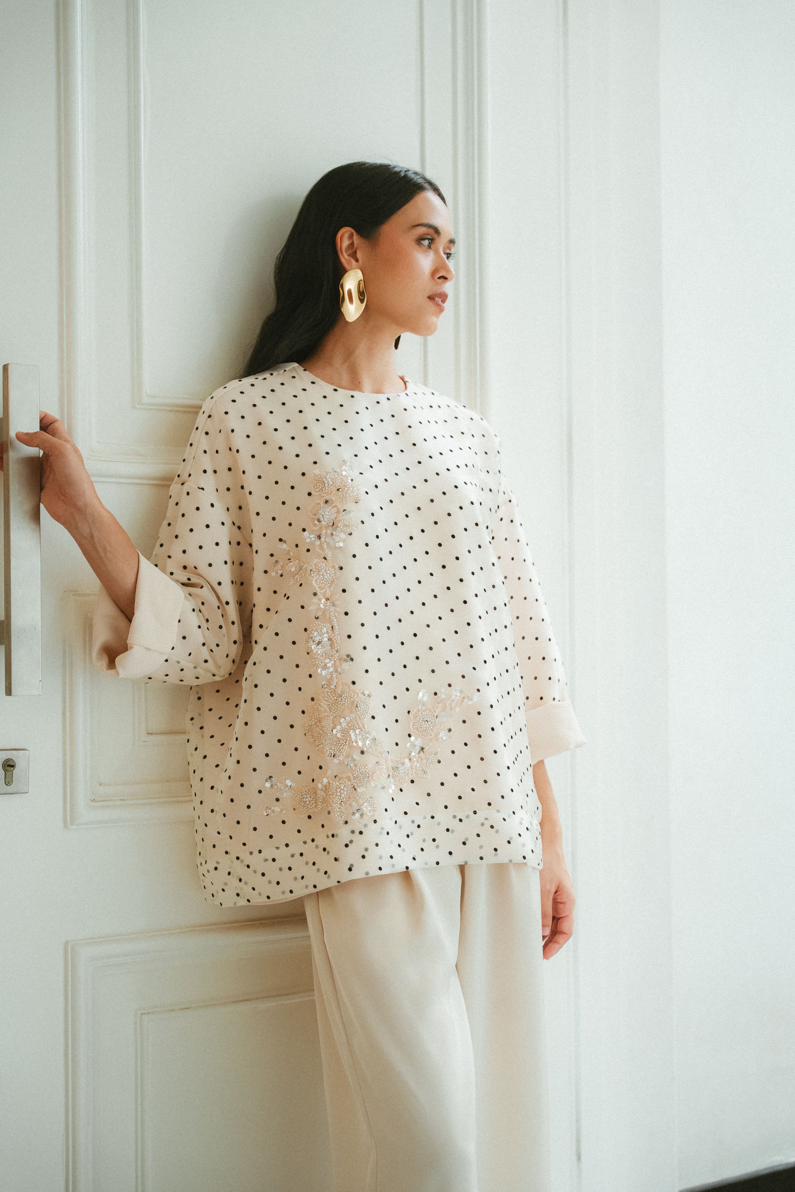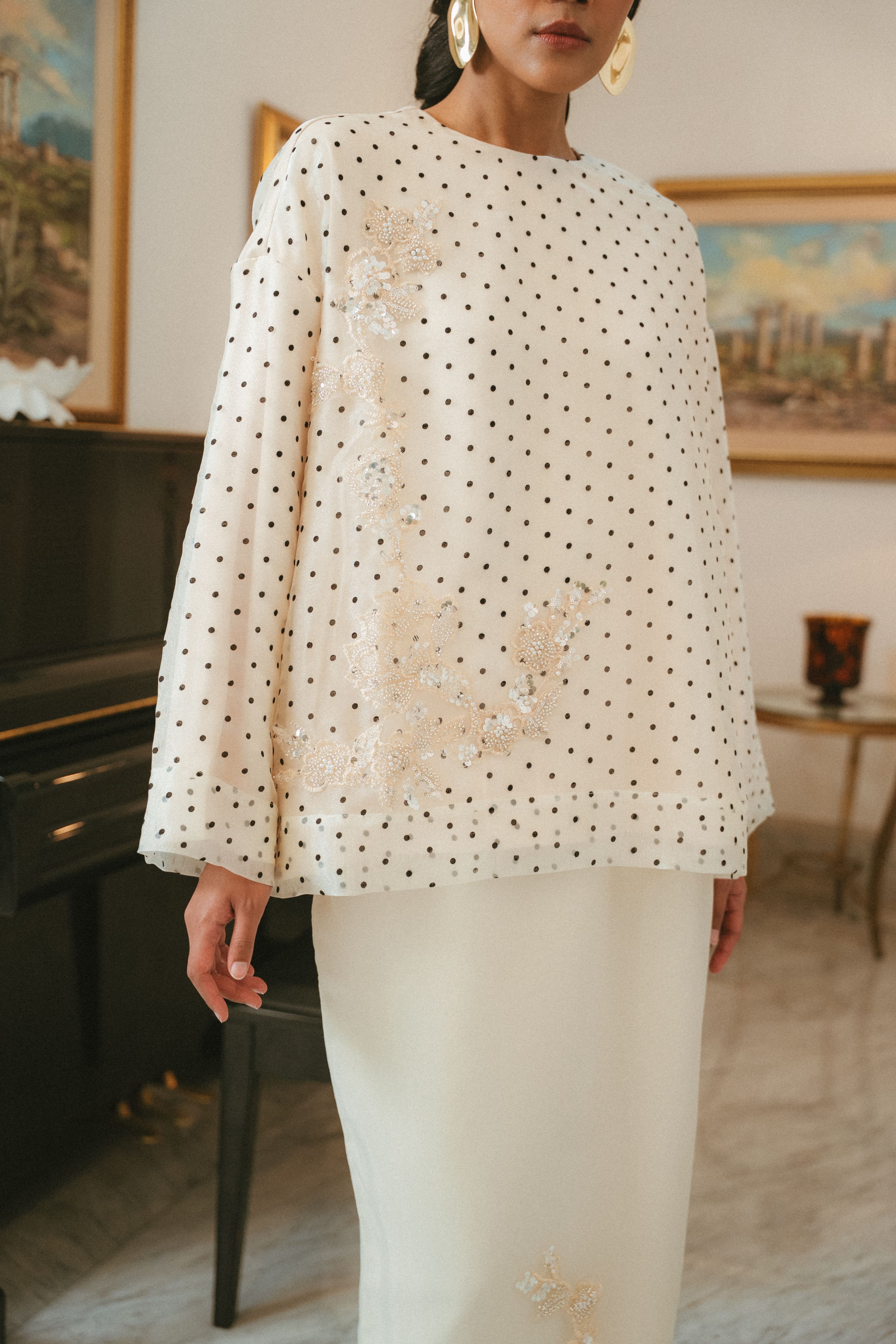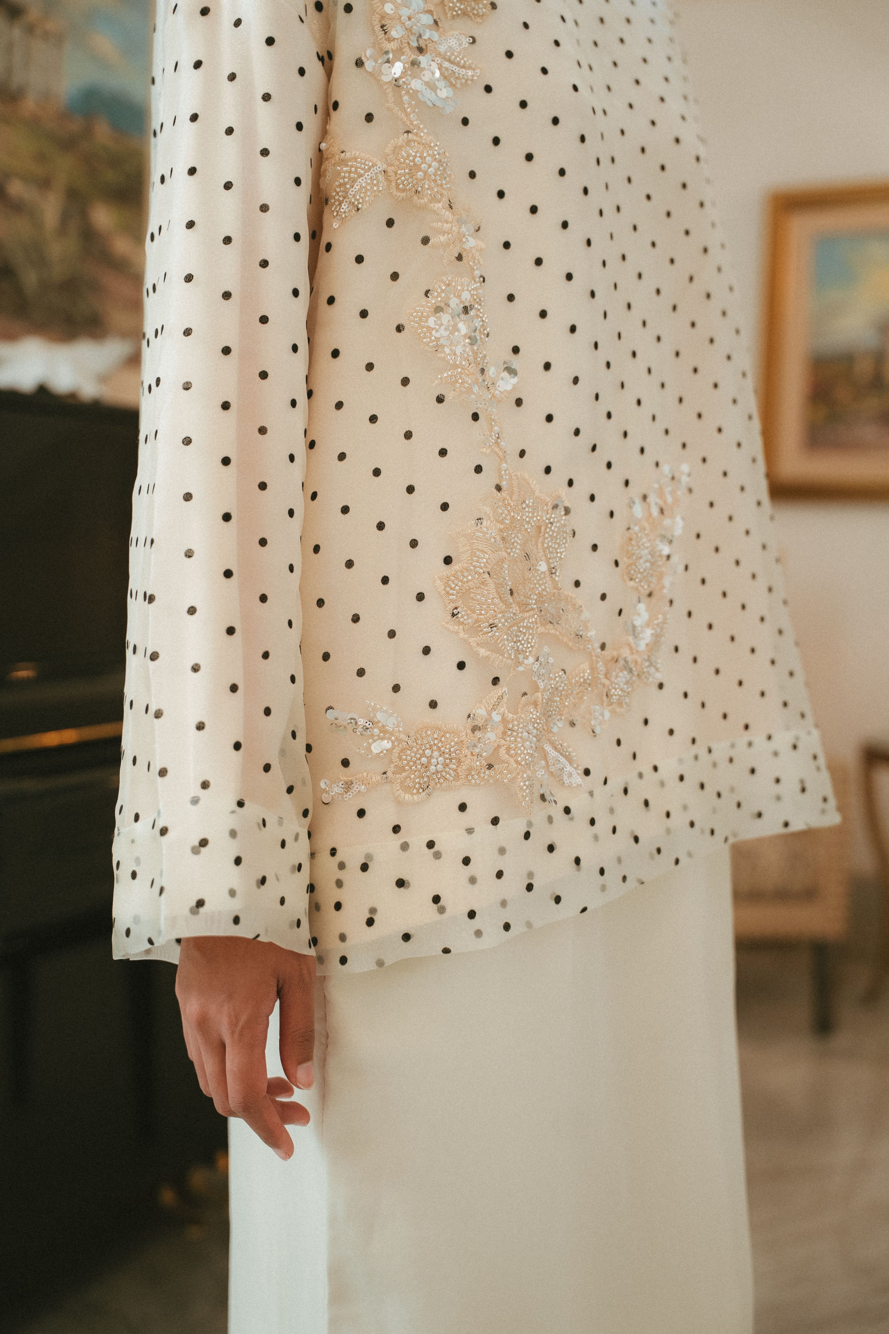 Our very first embellished piece, the shimmers and sparkle is done subtly & tastefully to create and elegant piece sure to elevate the wearer.