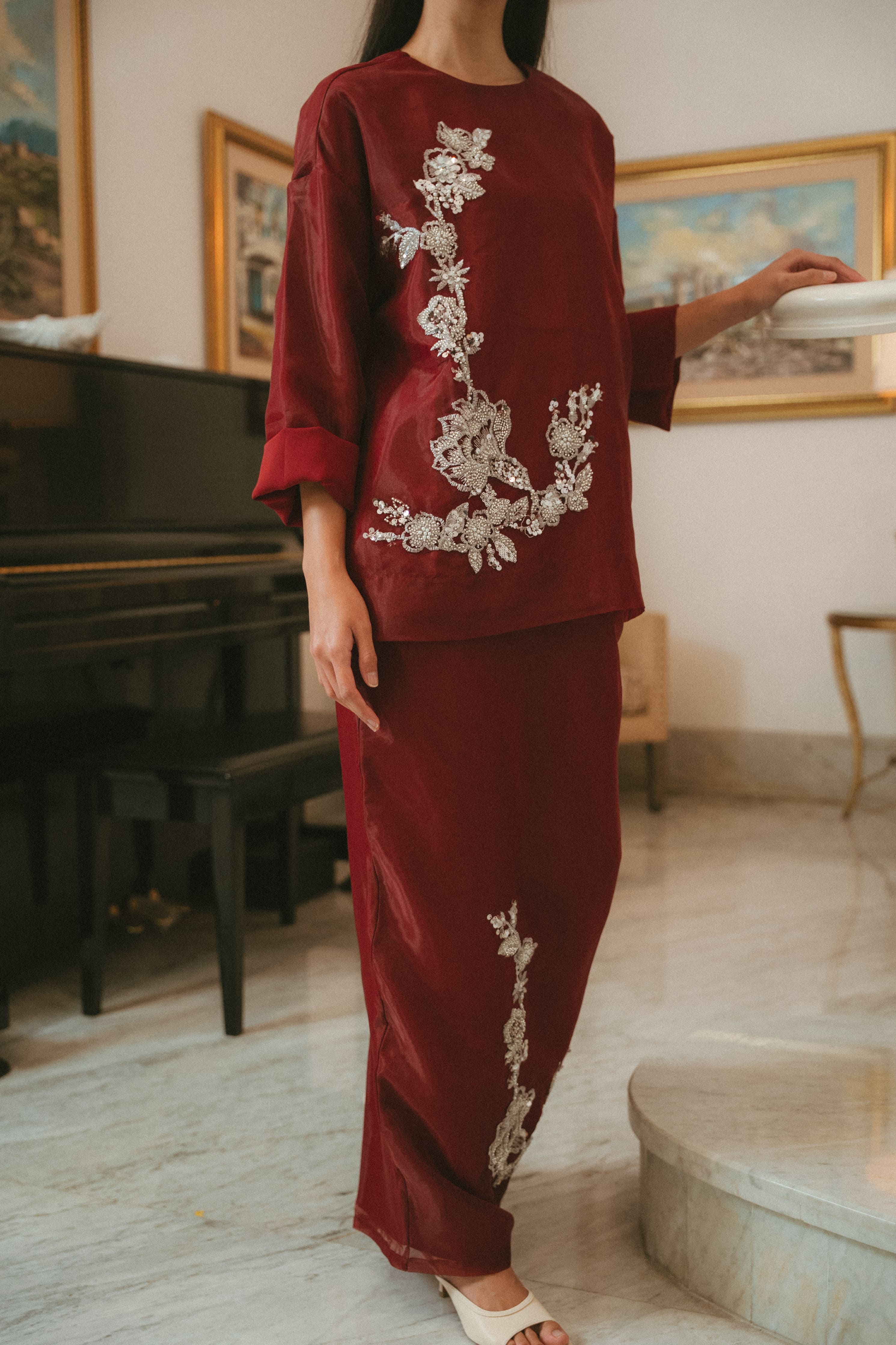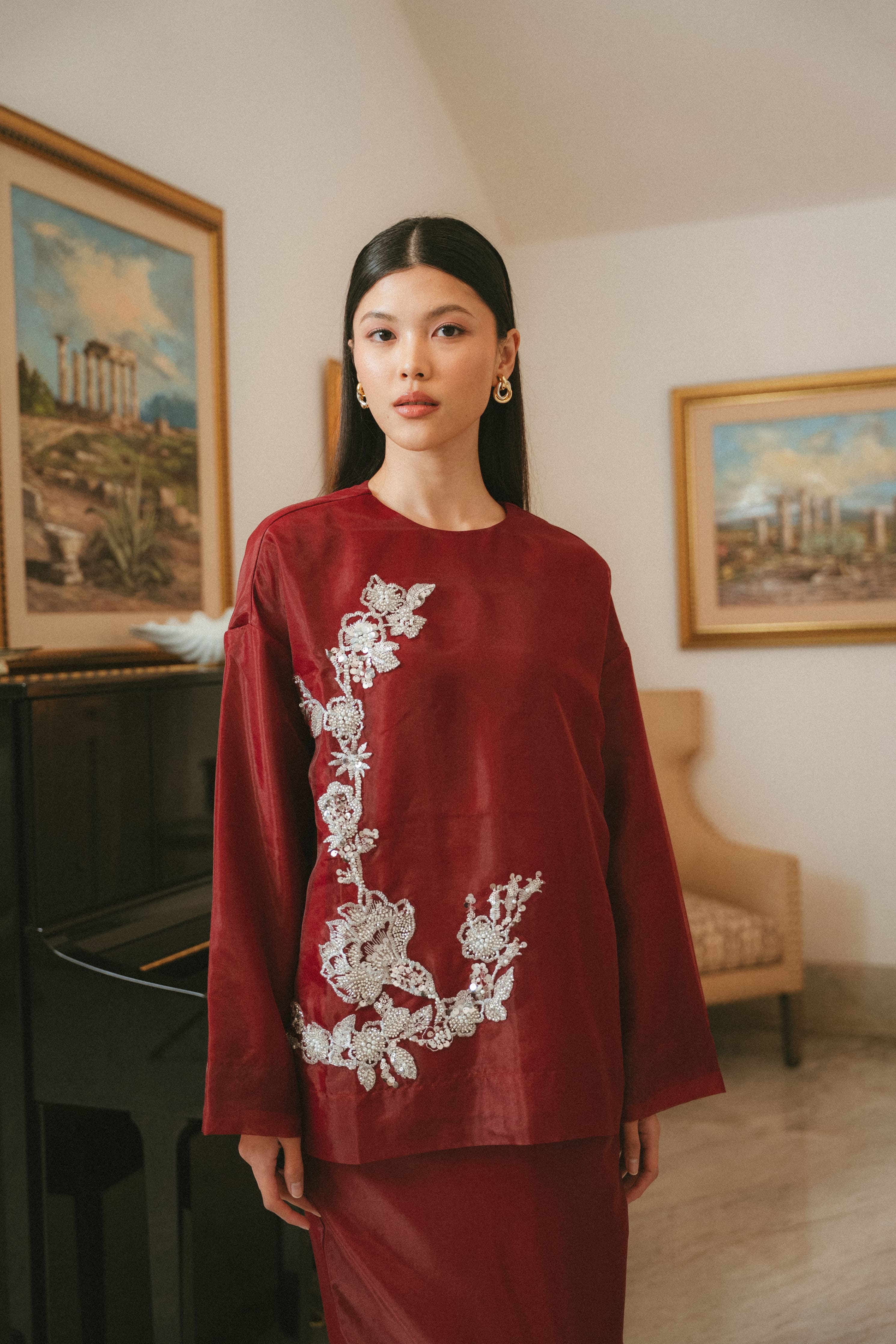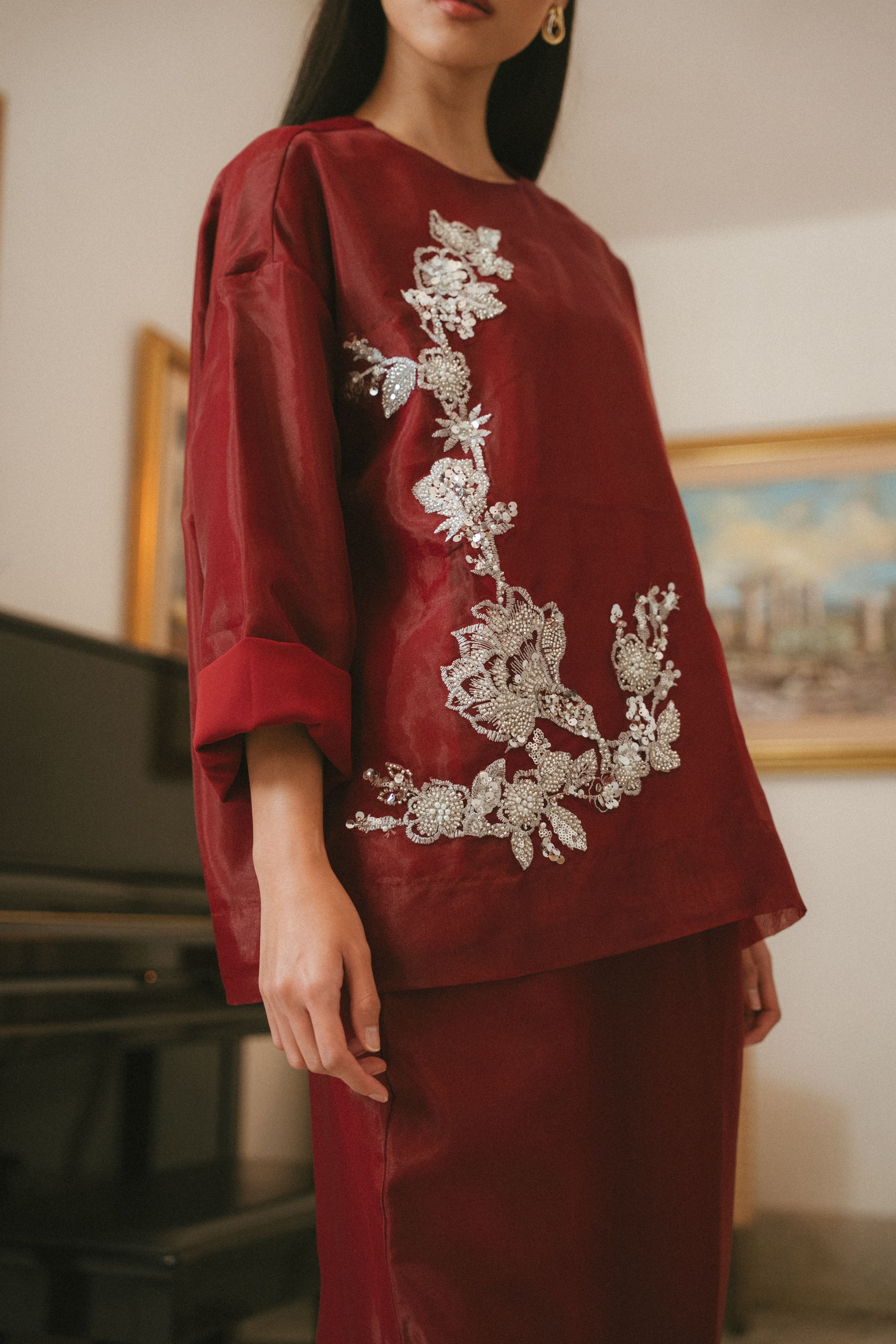 CAMELIA ORGANZA TOP IN GARNET