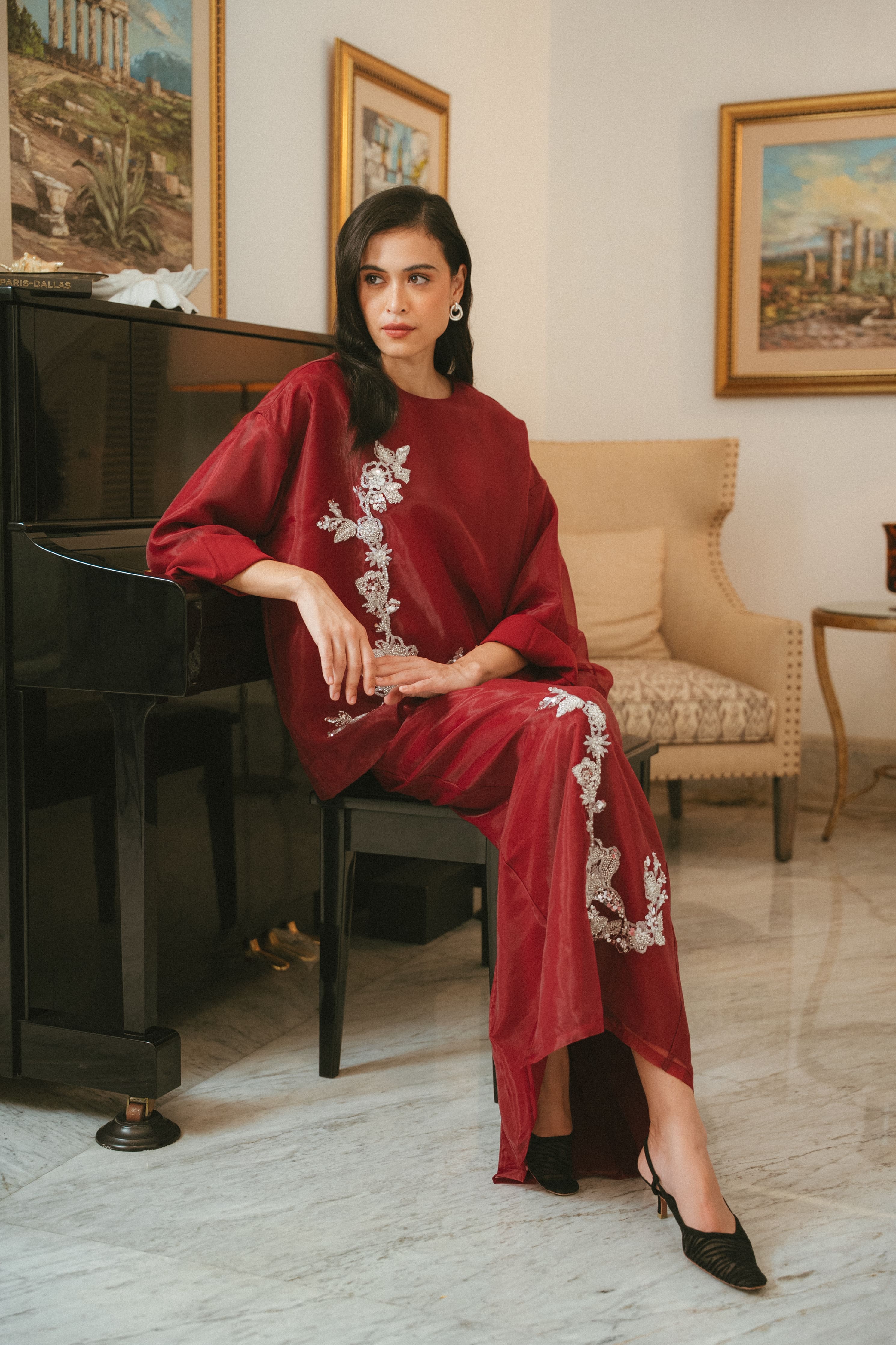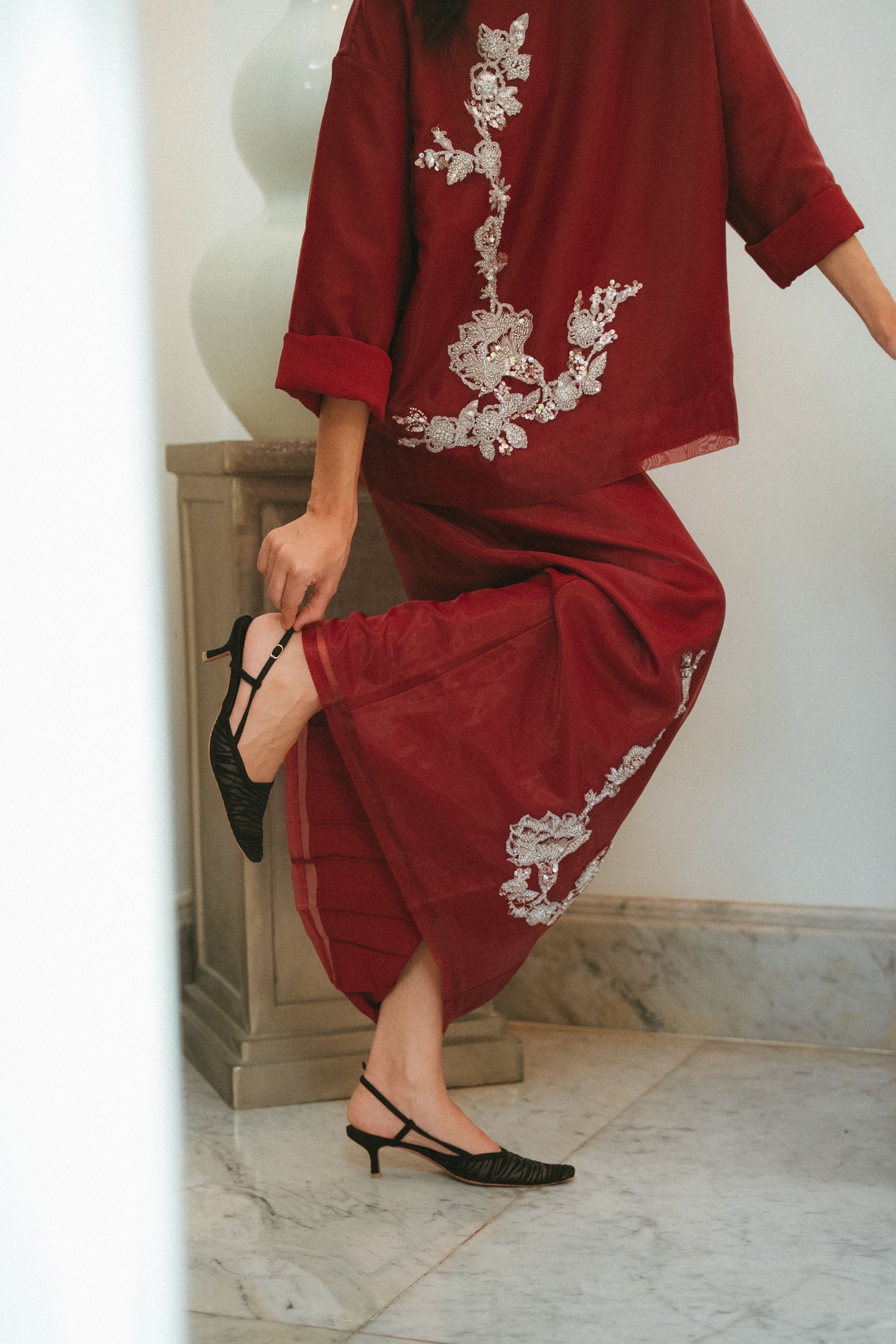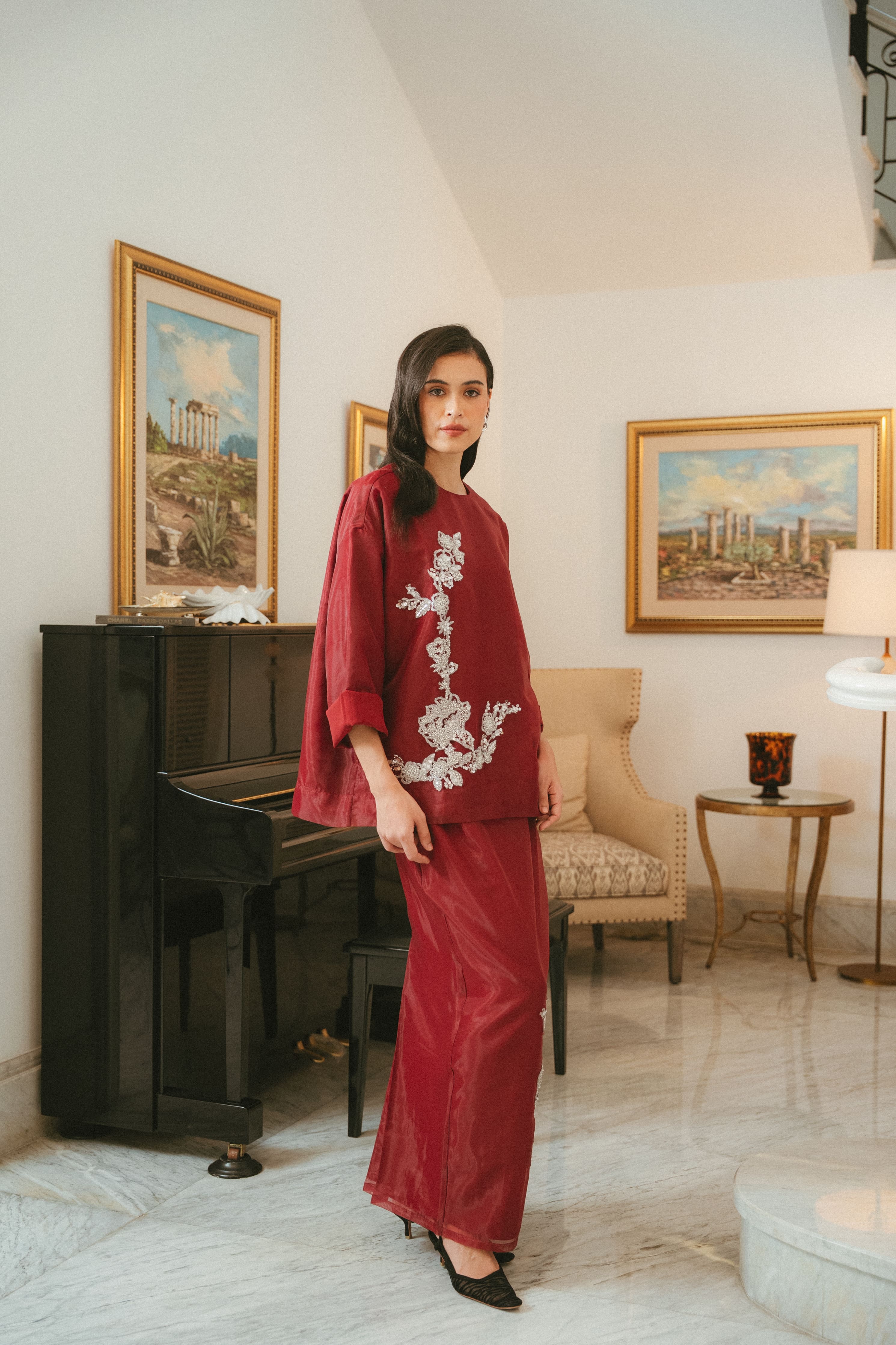 CAMELIA ORGANZA TOP IN GARNET
