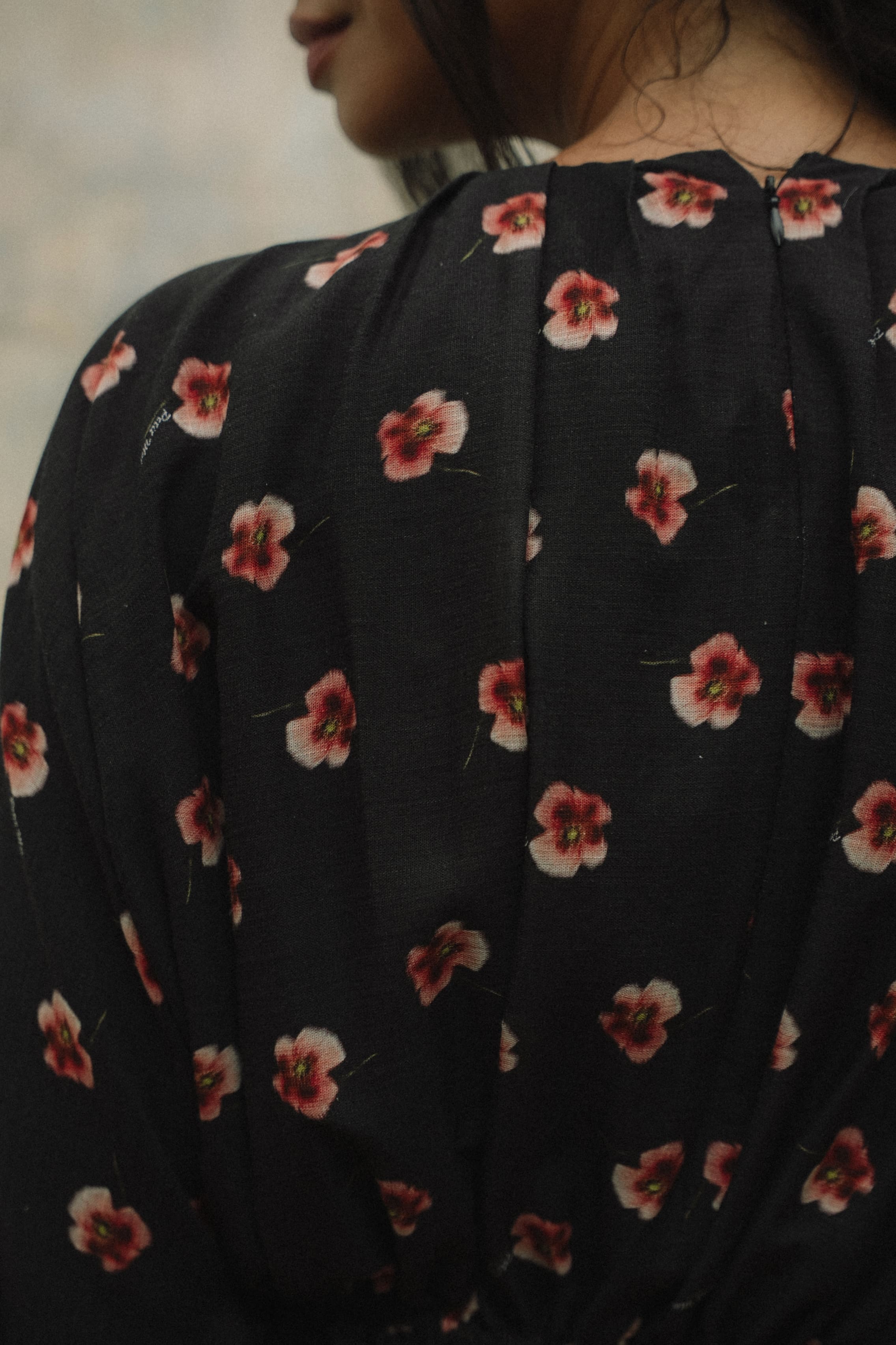 • Gathered waist top with zipper at the back