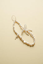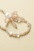 2 reviewsA mix of peach agate, crystal gemstones and acrylic seashells have been hand knotted to create this phone charm that features a 4mm agate bow and 18k PMxBH gold plated charm.