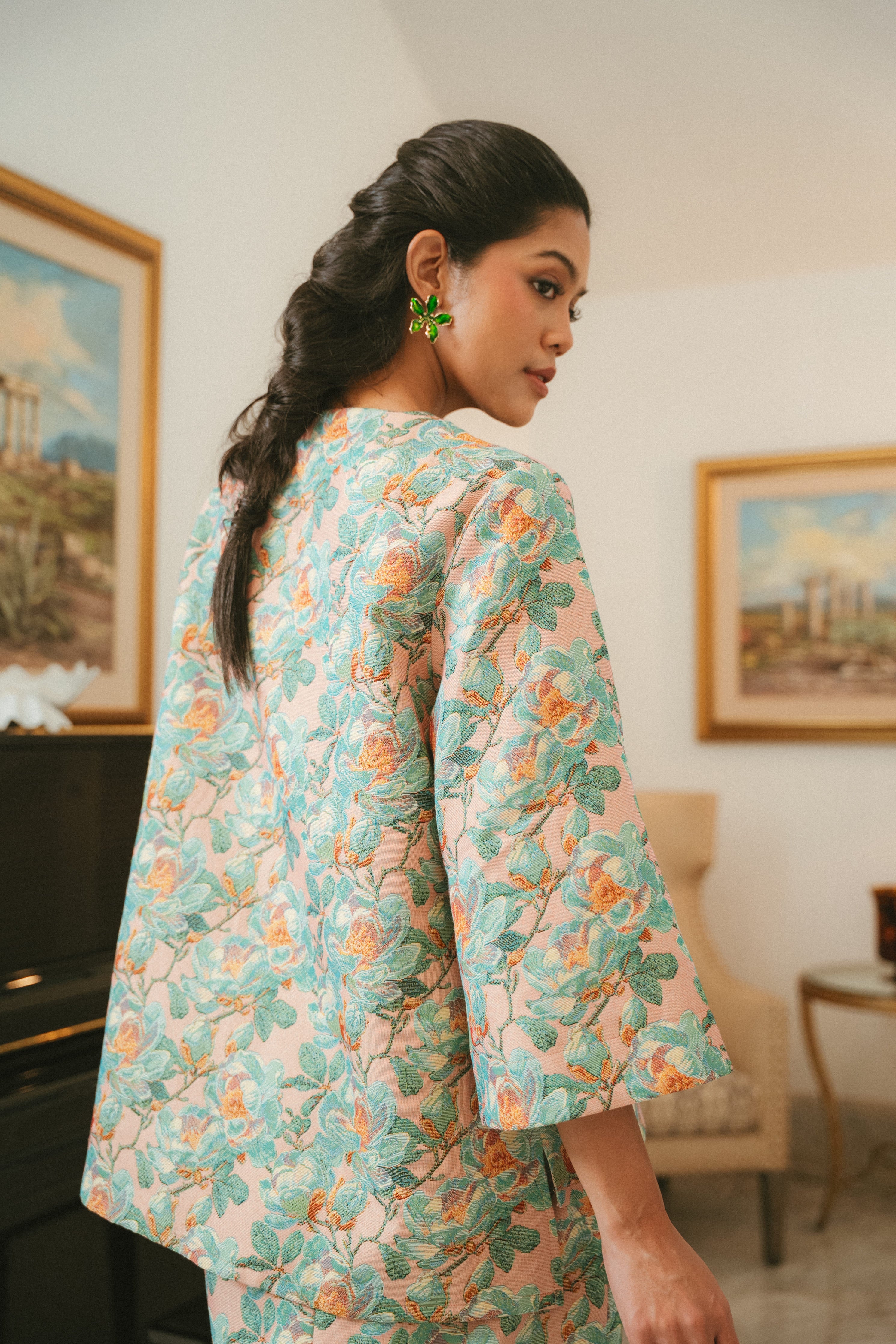 Wear it as a set for an extra regal look and when you need that burst of confidence, or dress it down as a jacket with a white tee and jeans.