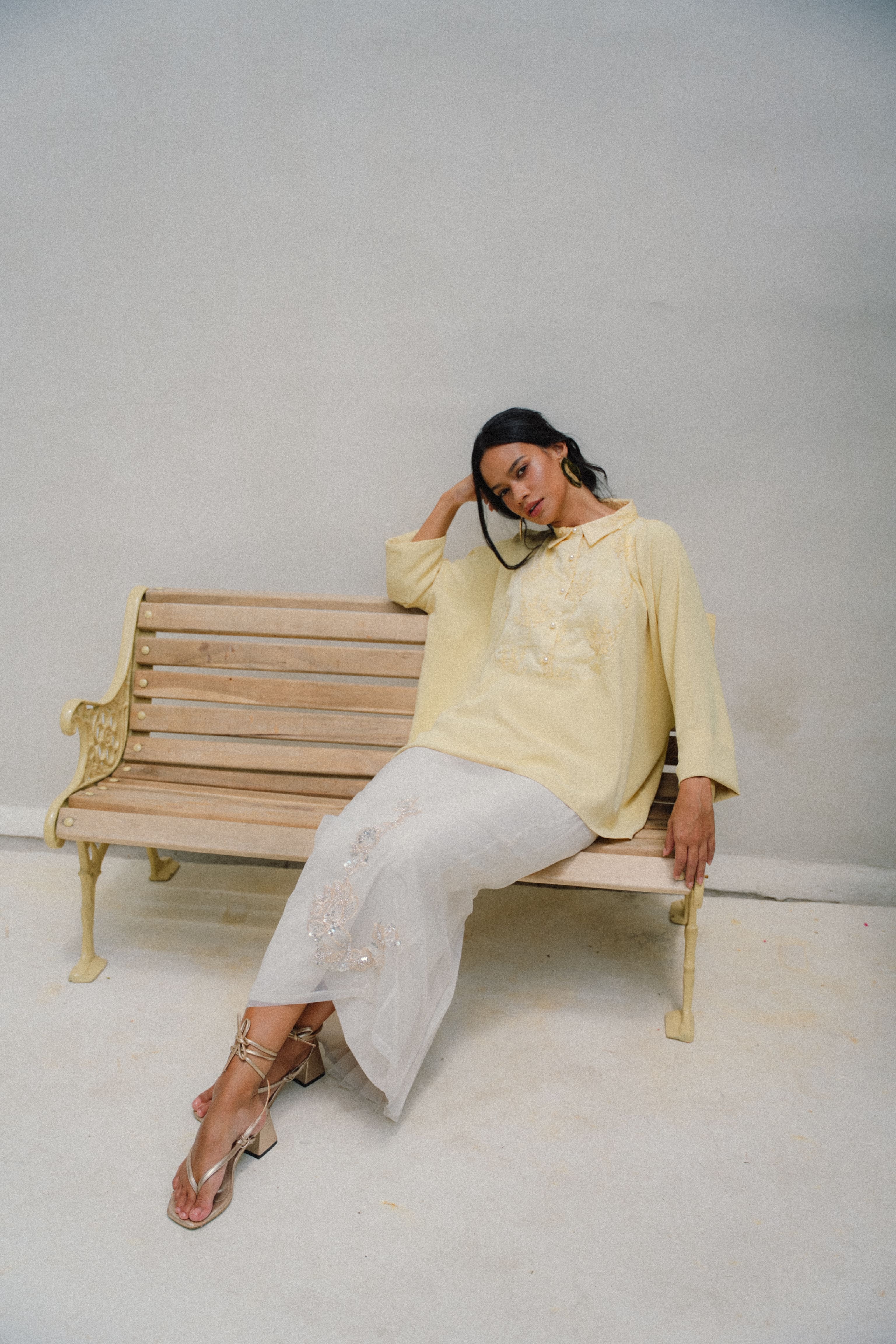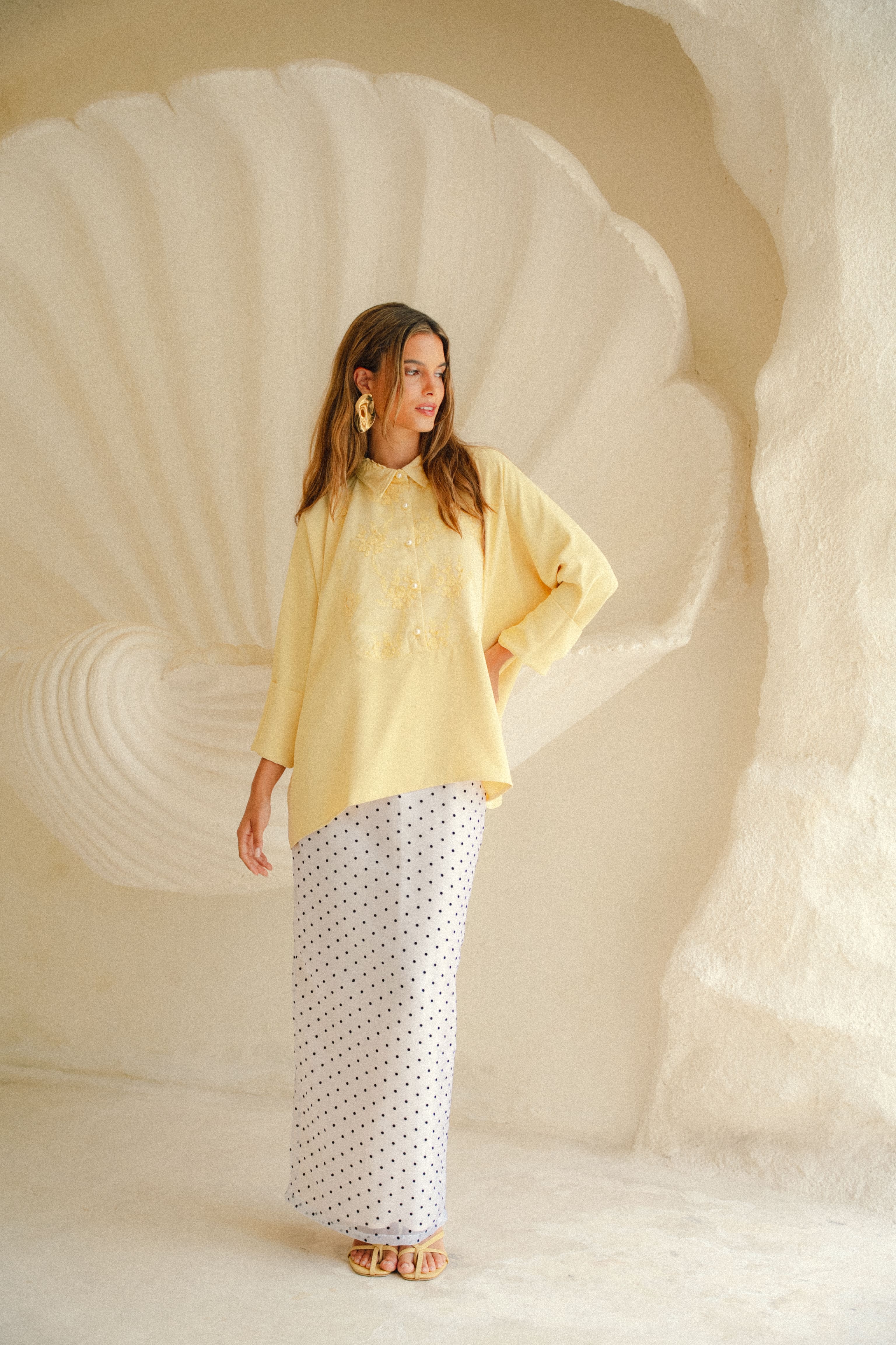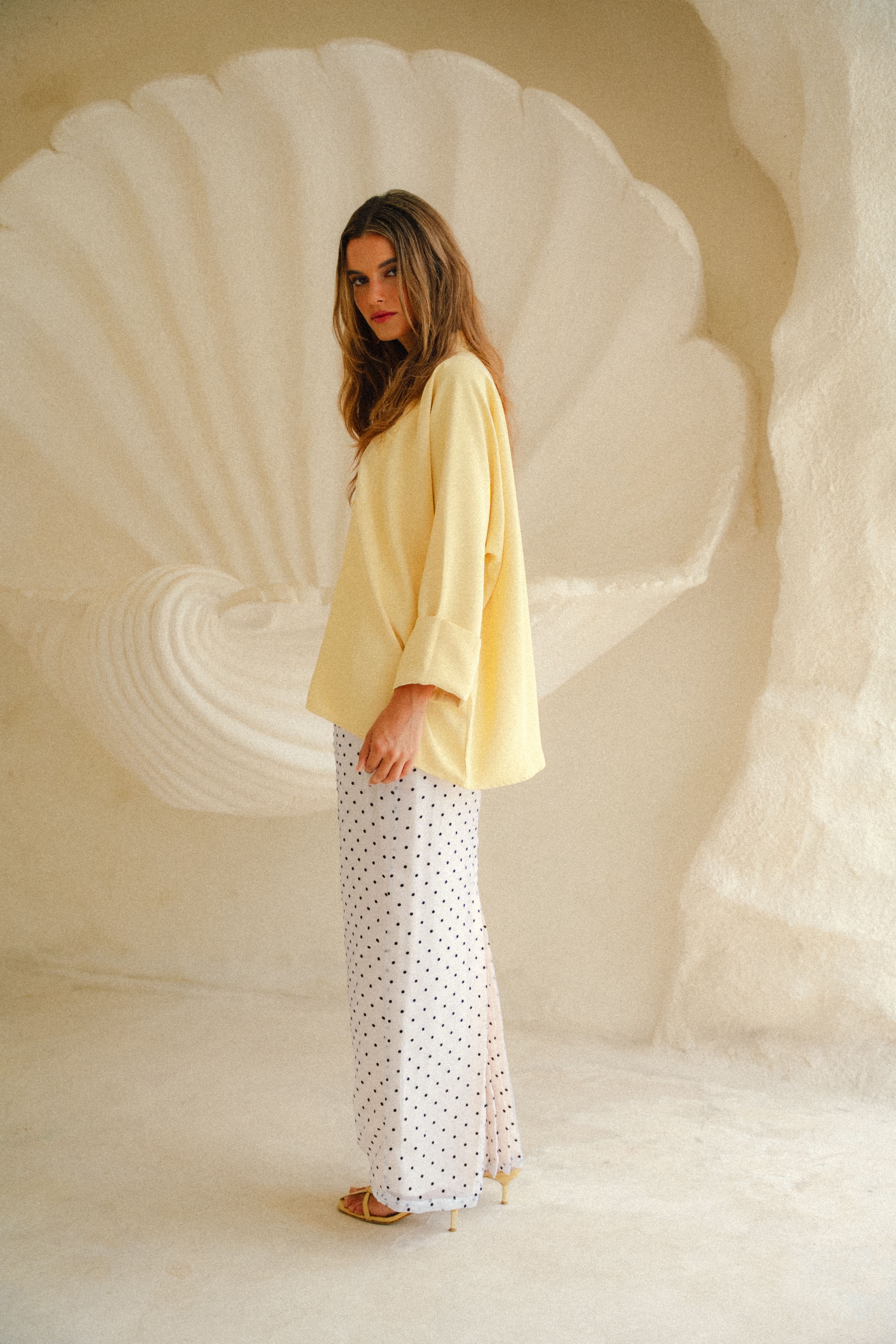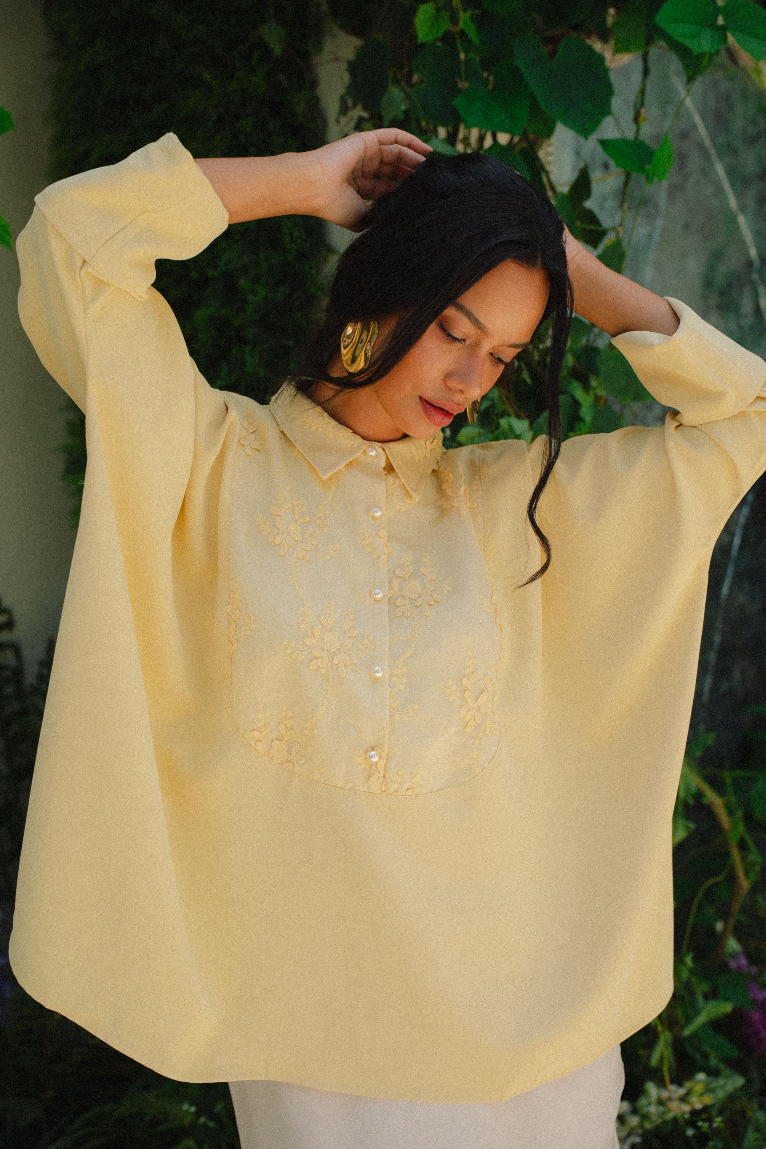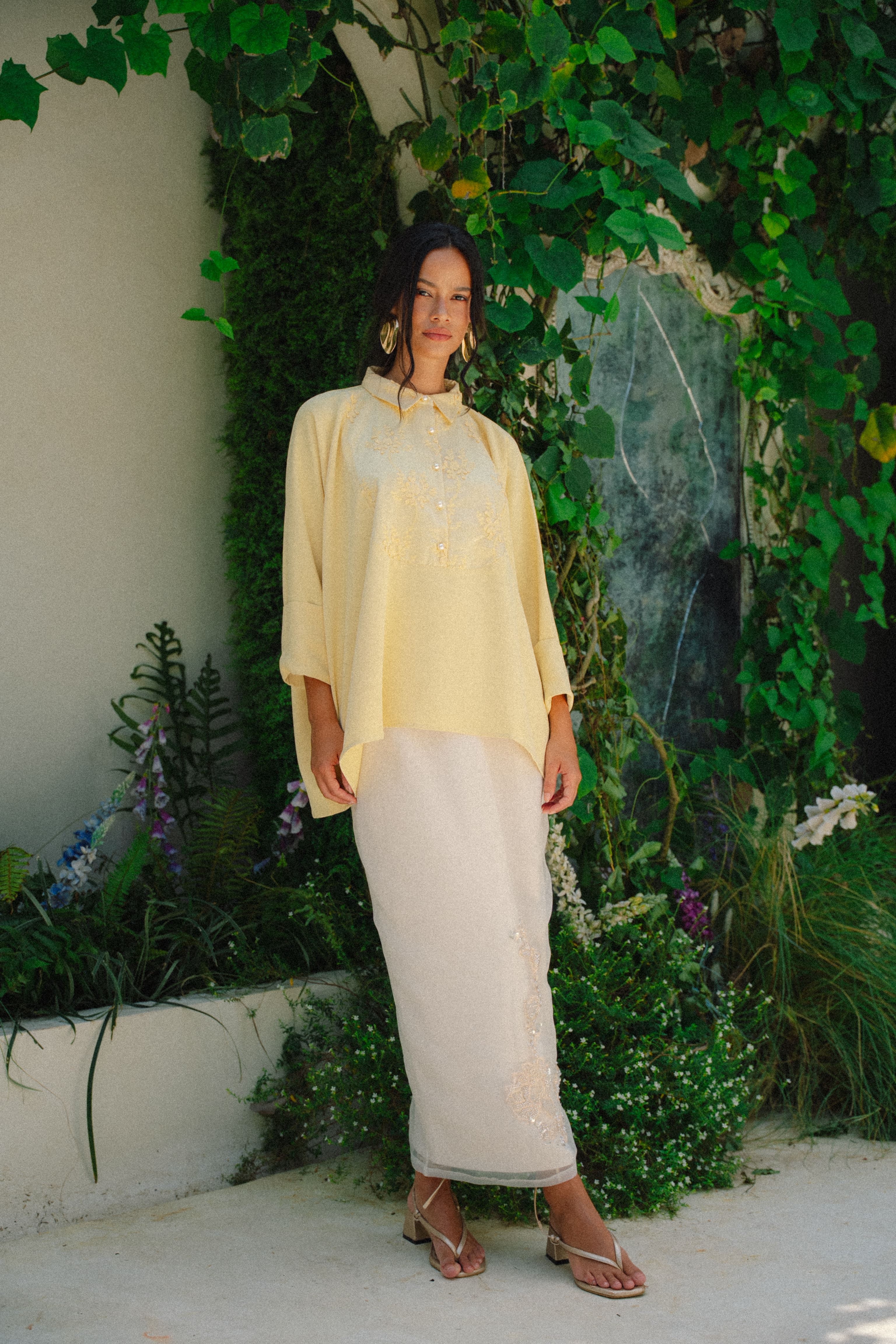 A garment like this asks for tenderness. Choose a looser fit (highly advisable to avoid a tight fit) & to handle with care. Treat it gently & it will drape and shimmer beautifully with every wear.